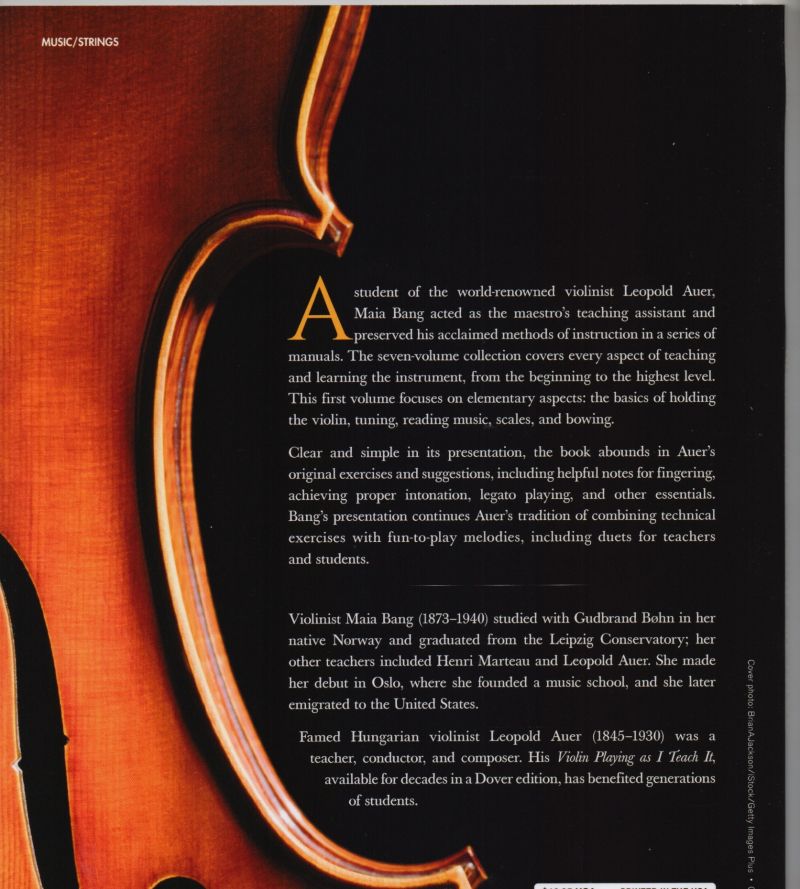 A student of the world-renowned violinist Leopold Auer, Maia Bang acted as the maestro's teaching assistant and preserved his acclaimed methods of instruction in a series of manuals. The seven-volume collection covers every aspect of teaching and learning the instrument, from the beginning to the highest level. This first volume focuses on elementary aspects: the basics of holding the violin, tuning, reading music, scales, and bowing. Clear and simple in its presentation, the book abounds in Auer's original exercises and suggestions, including helpful notes for fingering, achieving proper intonation, legato playing, and other essentials. Bang's presentation continues Auer'stradition of combining technical exercises with fun-to-play melodies, including duets for teachers and students.