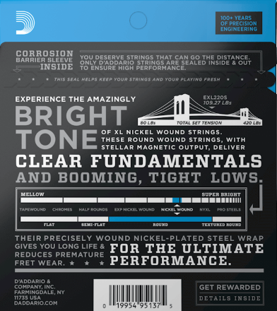 - Like all D’Addario bass strings, XL Nickel are made with our proprietary Hex-Core, ensuring perfect intonation, consistent feel, and powerful durability.