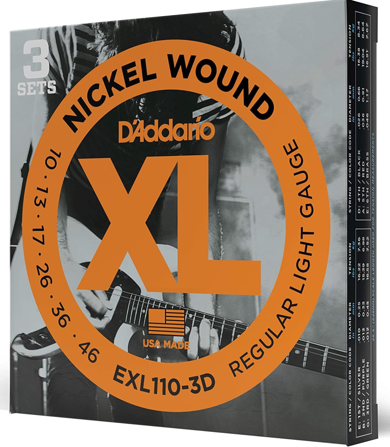 D'Addario 10-46 Regular Light, XL Nickel Electric Guitar Strings 3-Pack