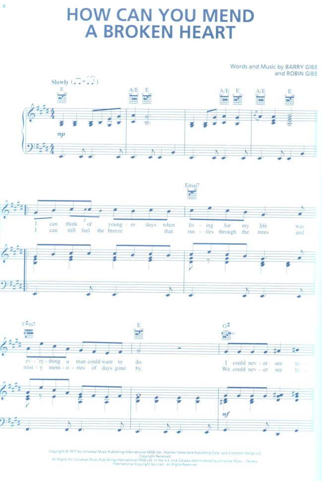Your favorite sheet music will come to life with the innovative Piano Play-Along series! With these book/CD collections, piano and keyboard players will be able to practice and perform with professional-sounding accompaniments.Containing eight cream-of-the-crop songs each, the books feature new engravings, with a separate vocal staff, plus guitar frames, so players and their friends can sing or strum along. The CDs feature two tracks for each tune: afull performance for listening, and a separate backing track that lets players take the lead on keyboard. The high-quality, sound-alike accompaniments exactly match the printed music. 8 big Bee Gees hits: How Can YouMend a BrokenHeart • How Deep Is Your Love • I Started a Joke • Jive Talkin' • Night Fever • Nights on Broadway • Stayin' Alive • You Should Be Dancing.