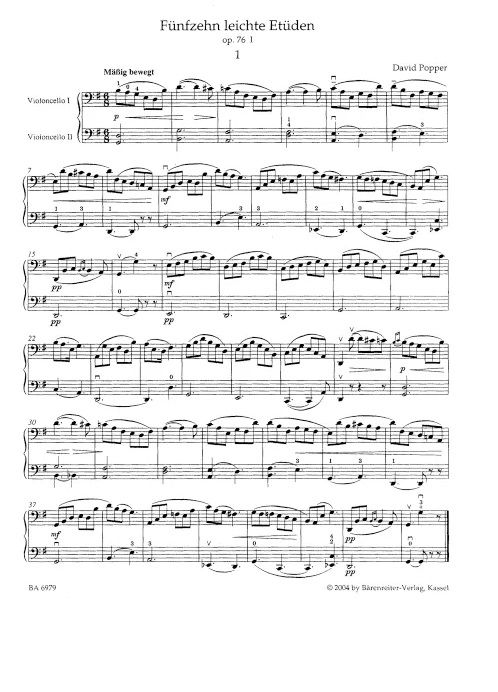 Попер - 15 Леки етюда за чело с акомпанимент на второ чело оп. 76 I и Десет Големи Етюда за чело соло оп. 76